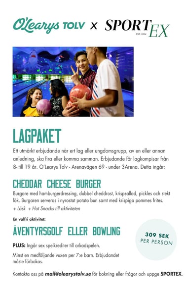 VIKTIGT! GLÖM INTE ATT UPPGE "SPORTEX" I BOKNINGEN FÖR ATT FÅ 6 GRATIS SPELKREDITER I ARKADEN!